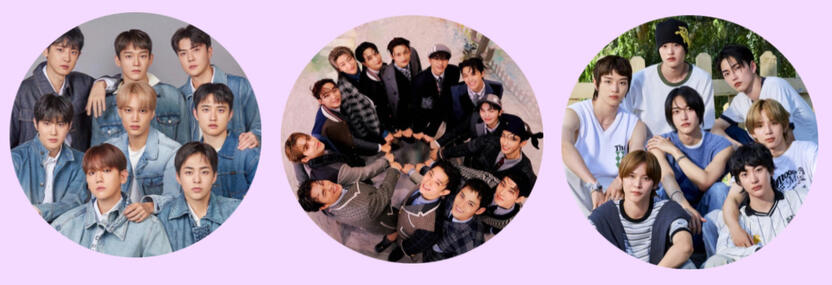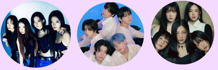 AESPA (ningning giselle), TXT (soobin beomgyu), RED VELVET (seulgi), EXO (baekhyun chanyeol), SEVENTEEN (dino minghao hoshi)